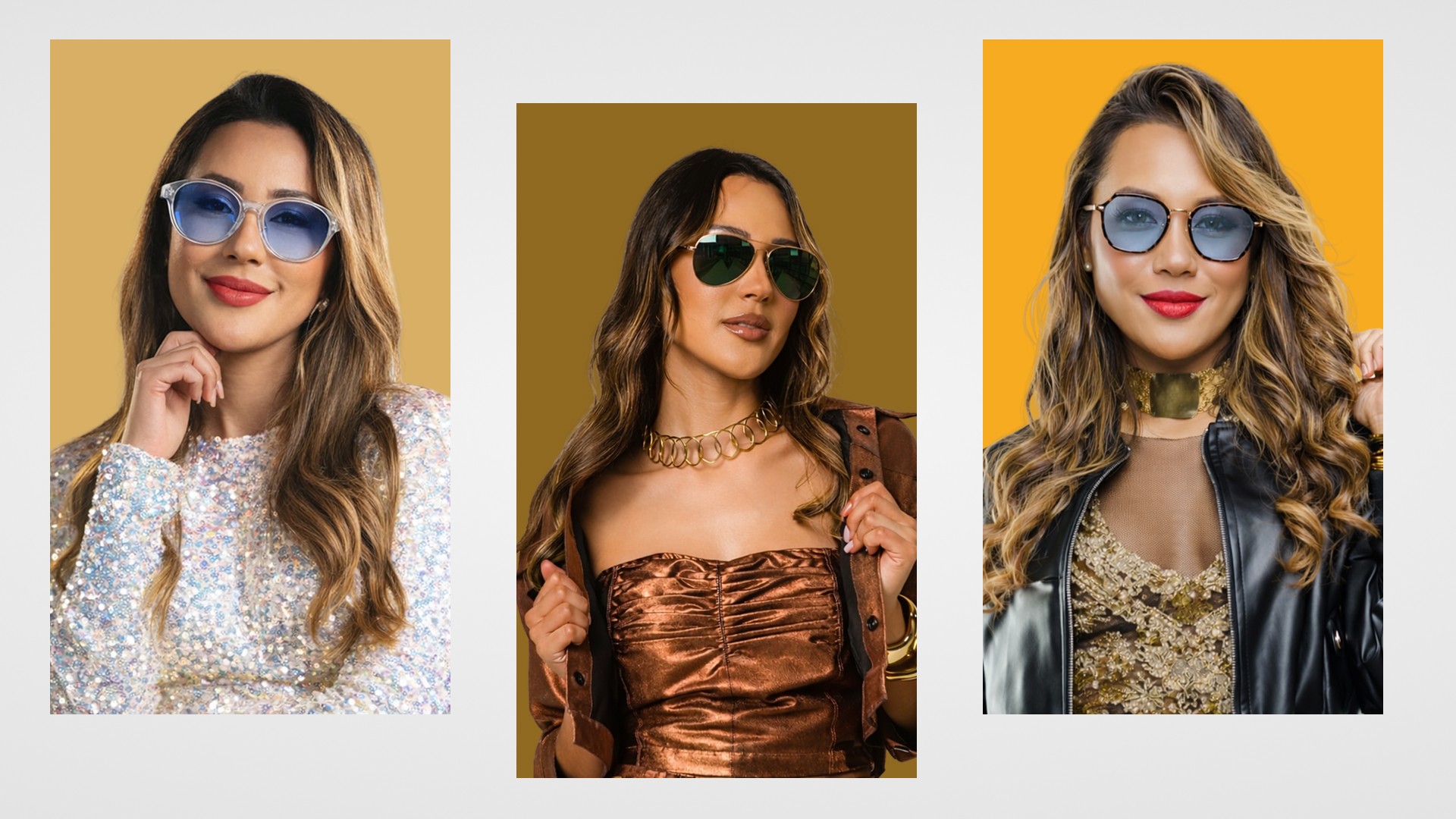 Elegância moderna com tons dourados, shapes ousados e presença marcante.
